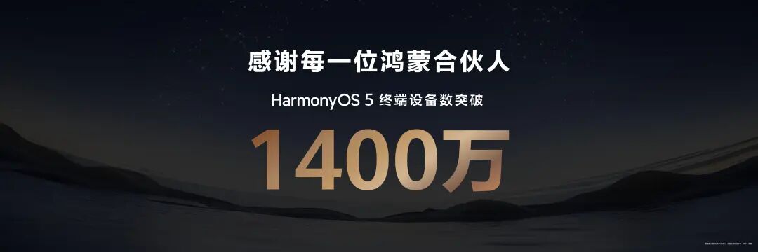 余承东还透露,截至目前,鸿蒙5终端设备数量已突破1400万。